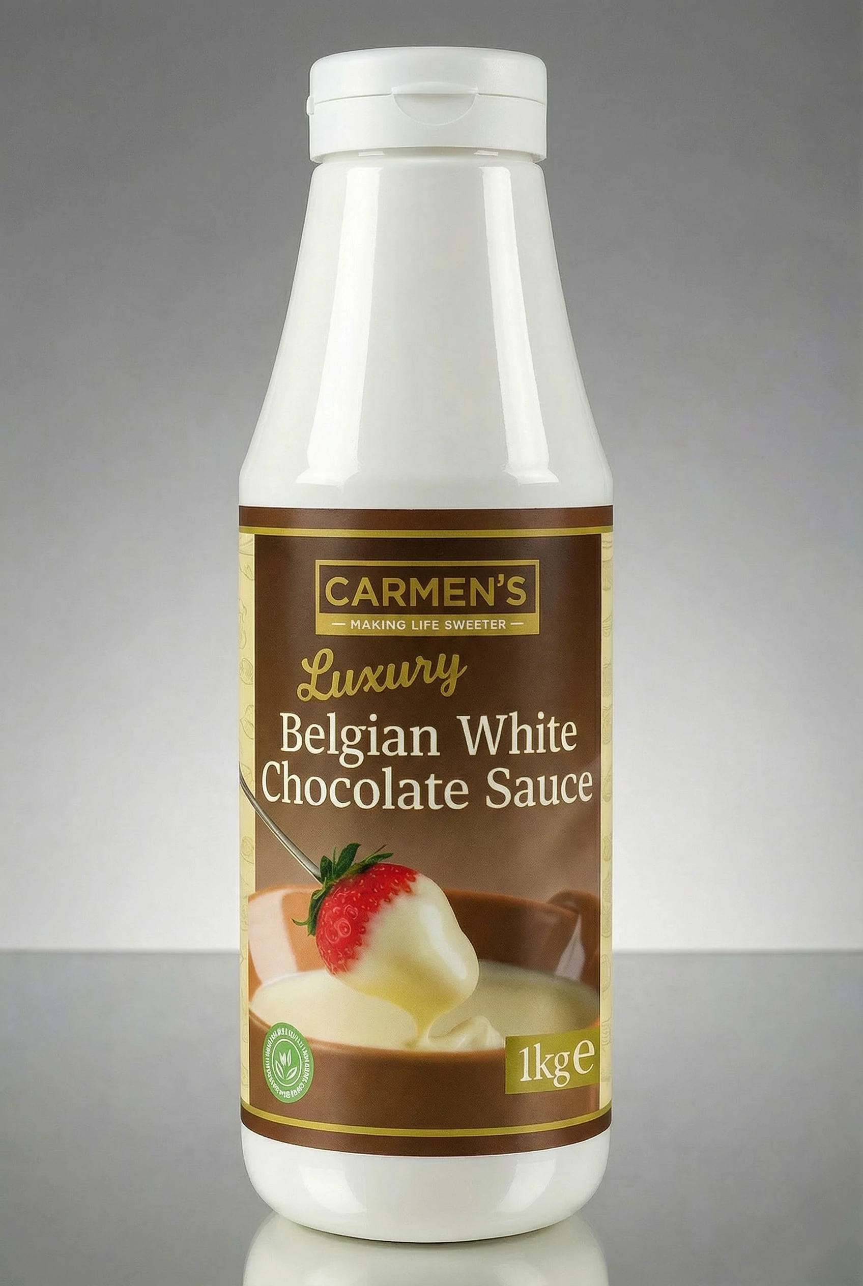 This Delicious new Belgian White Chocolate Sauce comes in 1-kilogram squeezy bottle and offers an amazing addition to your desserts, whether its topping Waffles, Crepes, Ice Cream or Milk Shakes to provide an exciting and new offering for your customers.